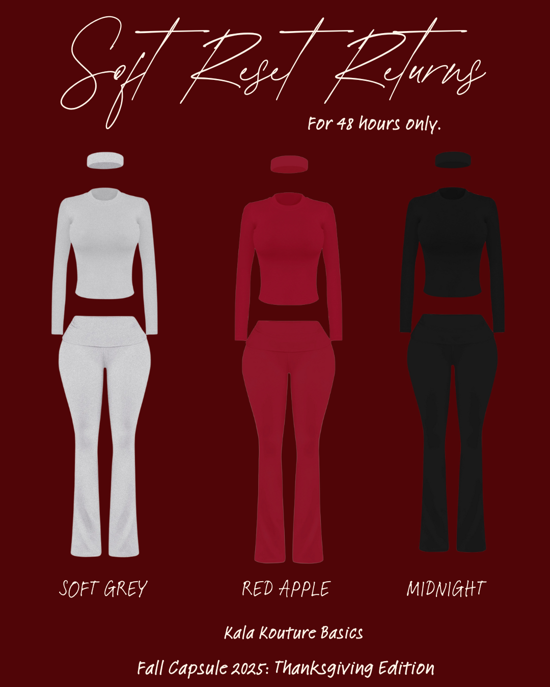 Designed with a tall-girl-friendly flare, a hug-hugging waistband, and comfort stretch that sculpts every curve. Comes with a matching headband so you stay cute, confident, and cozy — whether you’re running errands, lounging at home, or stepping into your soft girl era. 🍂✨☕️